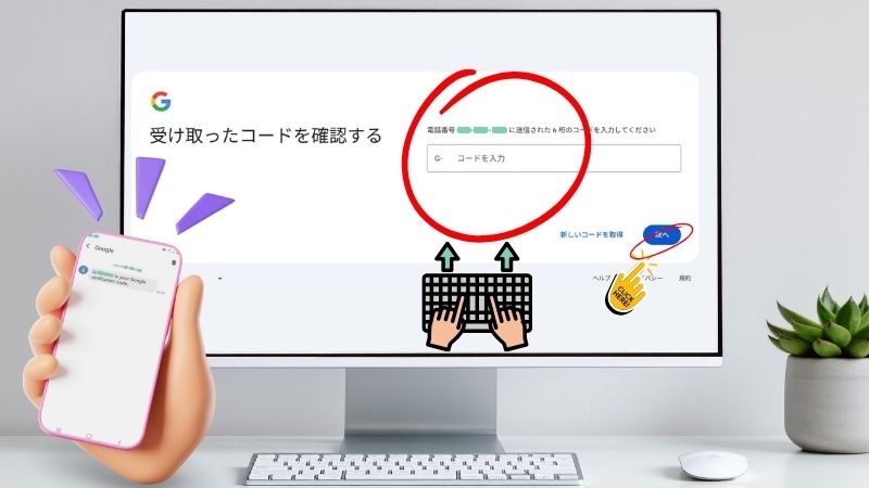 スマホに届いた6桁の数字(コード)を入力すれば、作成完了です!