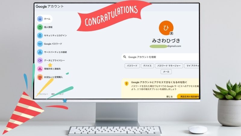 お疲れ様でした! これでGoogleアカウントの作成は完了です。