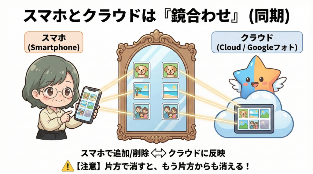 Googleフォトは、スマホとクラウドが【鏡合わせ】になっています。